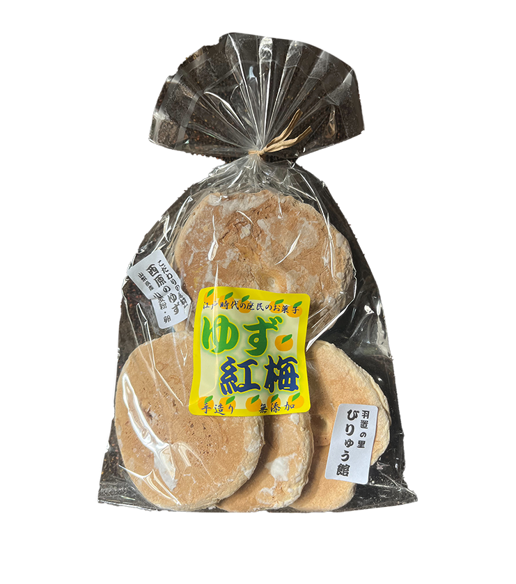 紅梅とは、江戸時代から伝わる食べ物で、現代風に食べやすくアレンジされている山梨代表のお菓子です。西原産のゆずを使用して作っています。