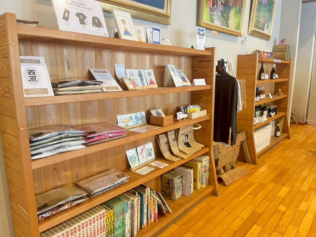 びりゅう館のある西原(さいはら)に住んでいたり関わりのある作家さんの作品や工芸品、グッズなども揃っています。手作りで作られた品や、ここならではのグッズをぜひご覧ください。